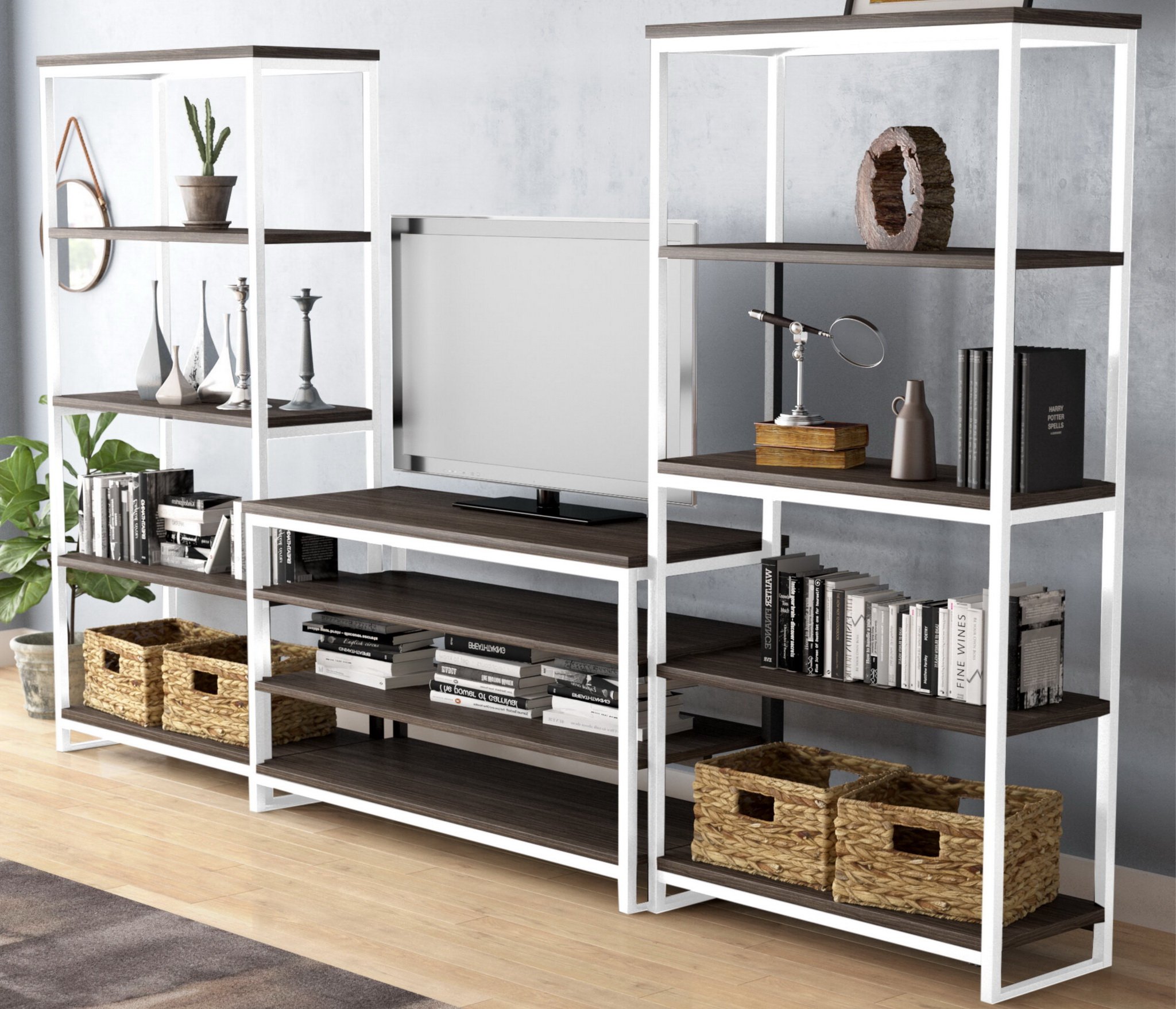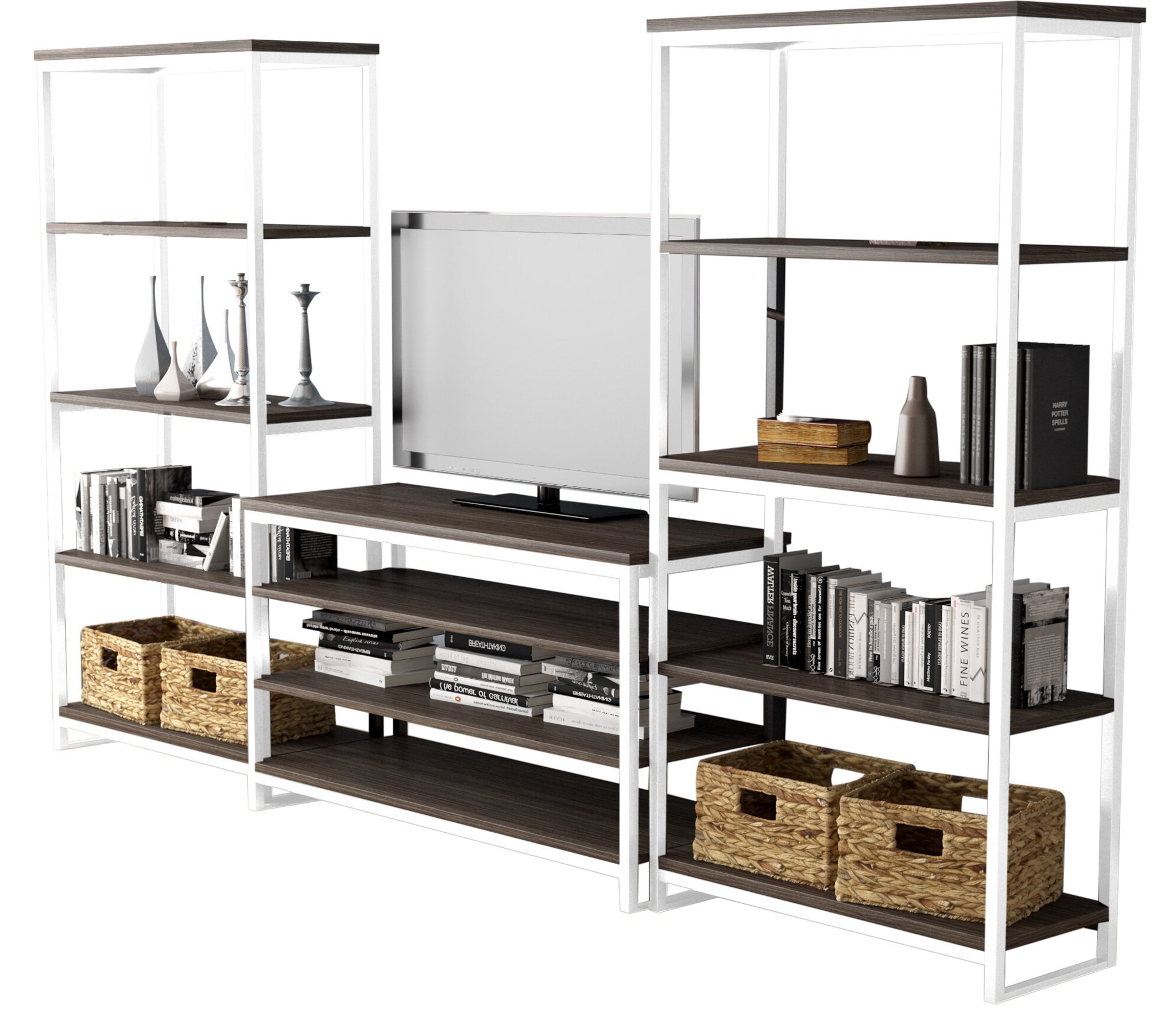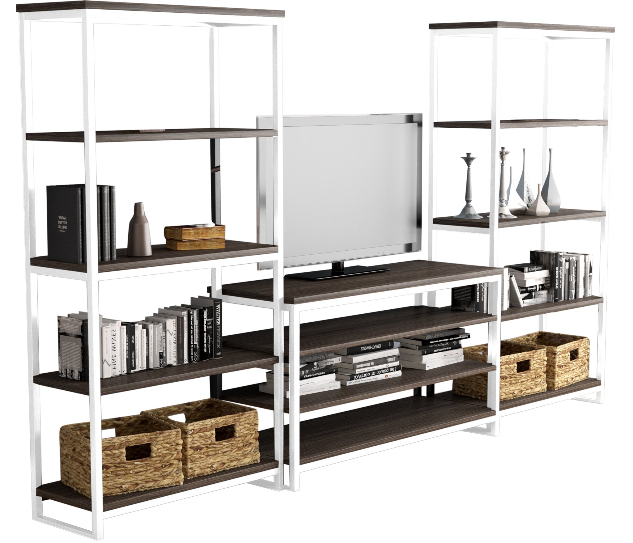 С ТВ тумбой , со стеллажом, глянцевые фасады, С полками