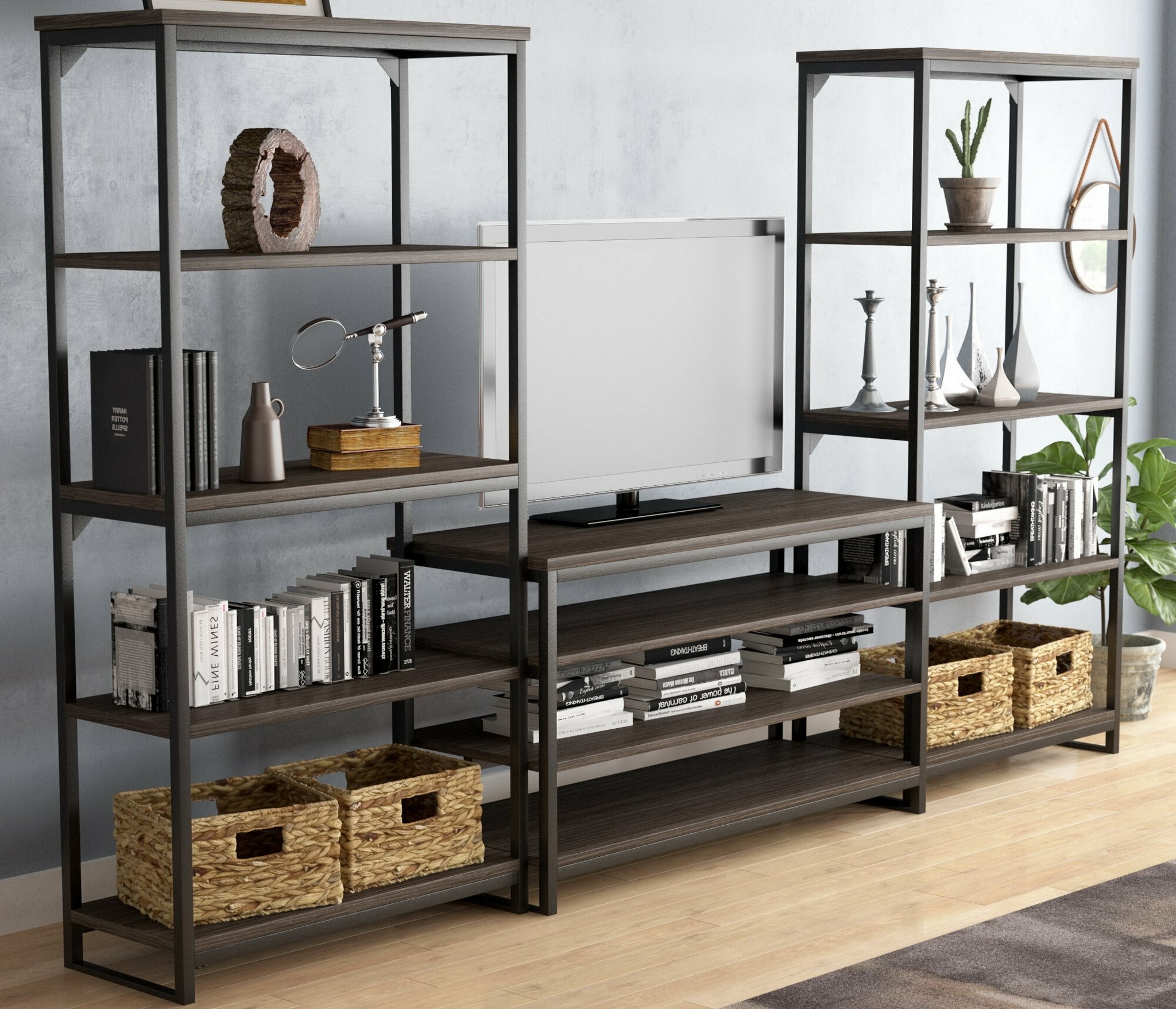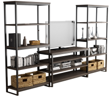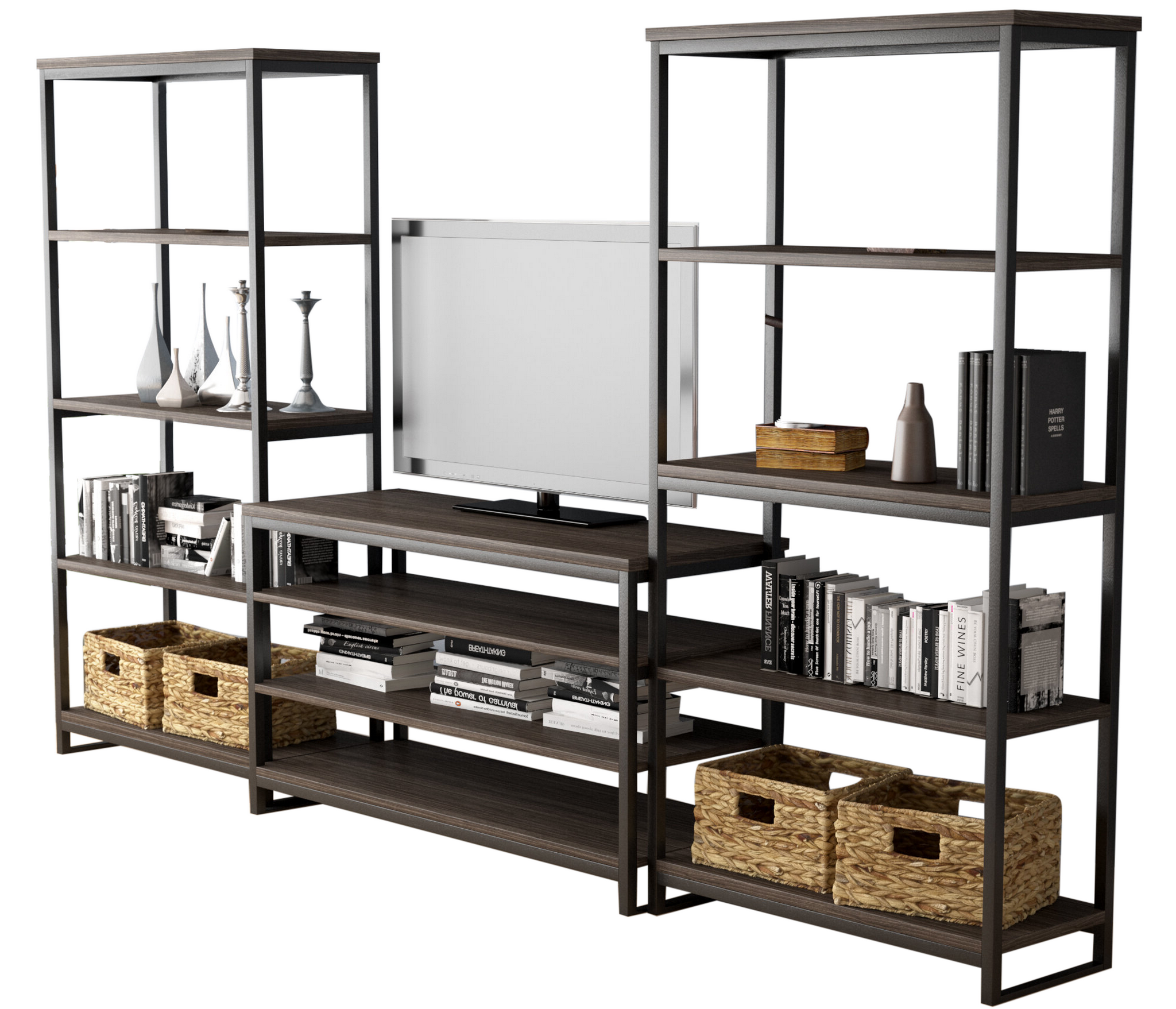 С ТВ тумбой , со стеллажом, глянцевые фасады, С полками