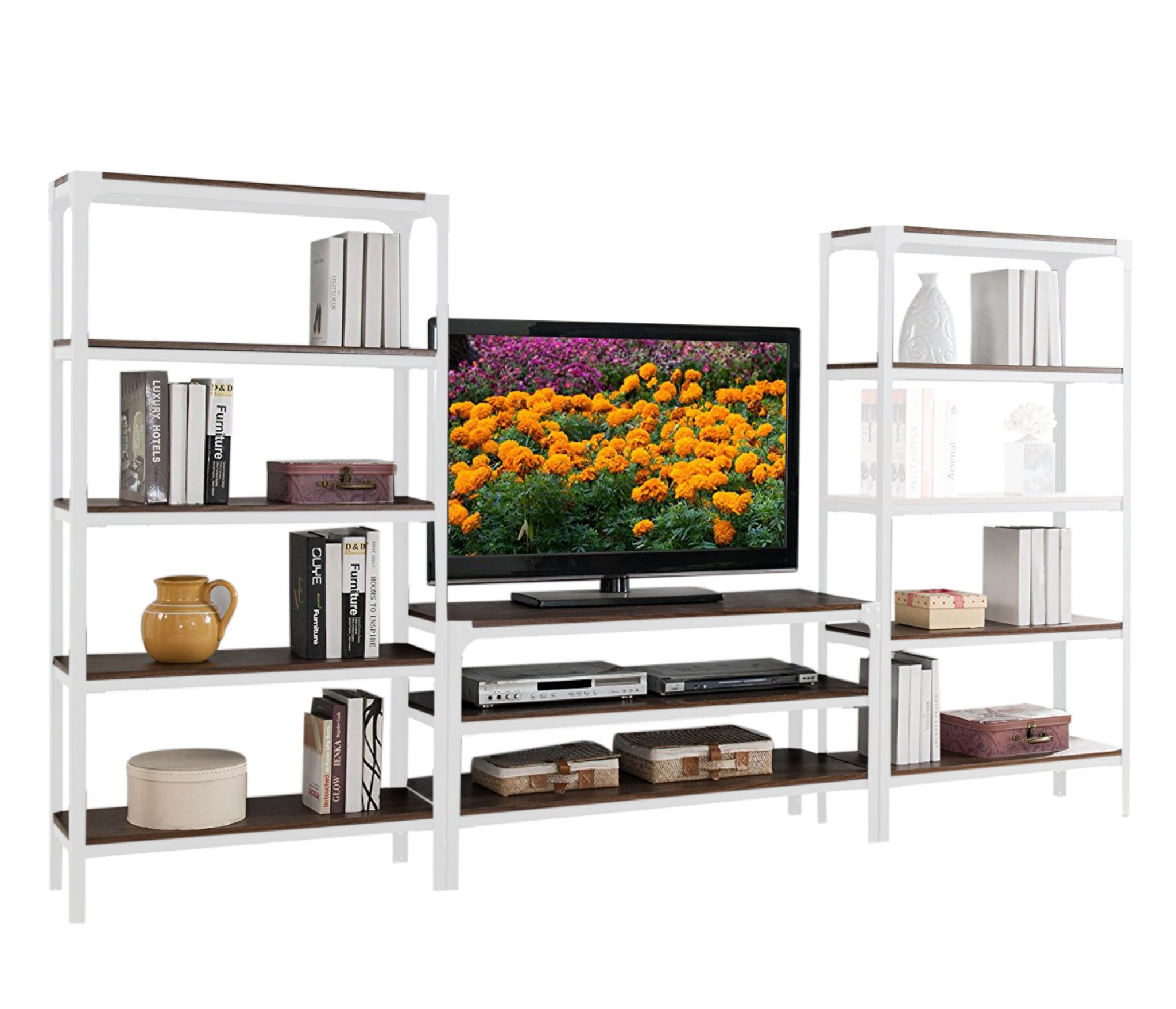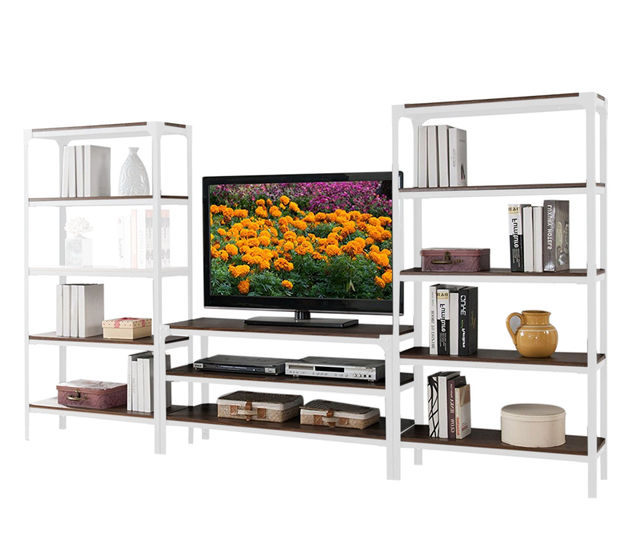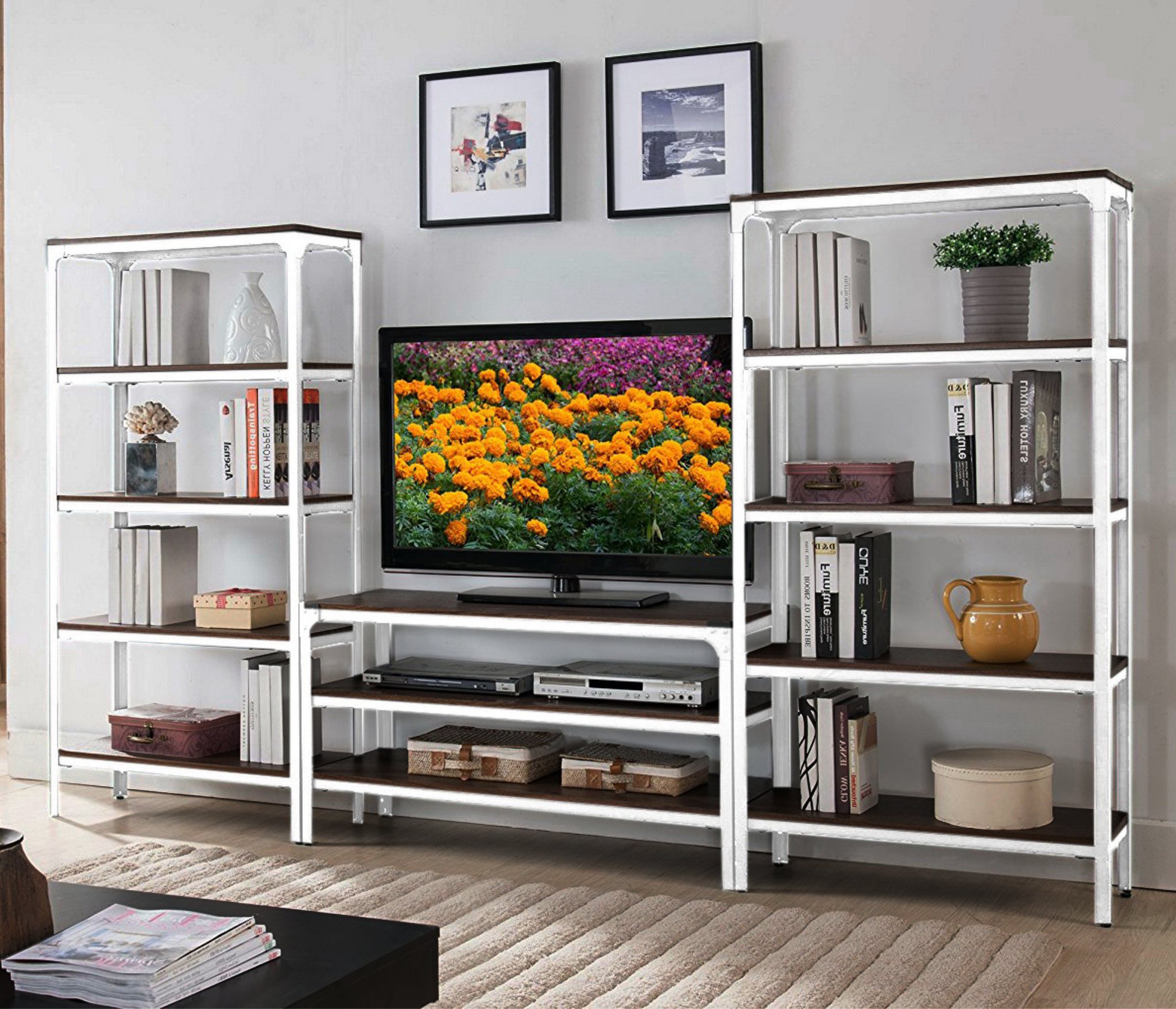 С ТВ тумбой , со стеллажом, глянцевые фасады, С полками