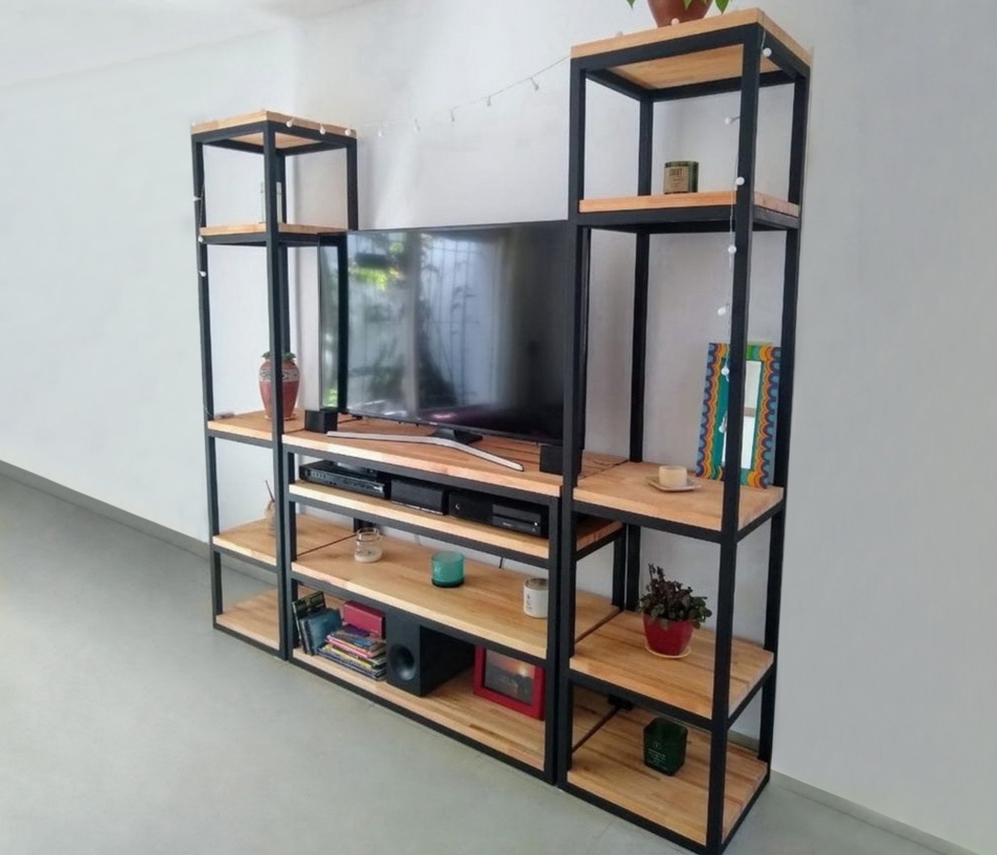 Каркас: профильная труба 20х20 мм.Прочное полимерно-порошковое покрытие черного, белого и серого цвета Дерево: массив сосны 20 мм, покрытое специальным маслом для мебели, цвета на выбор: бесцветный, белый, серый, махагон, орех, морёный дуб, черный, клён, черный графит, голубой графит, темное золото графит, золото графит.
