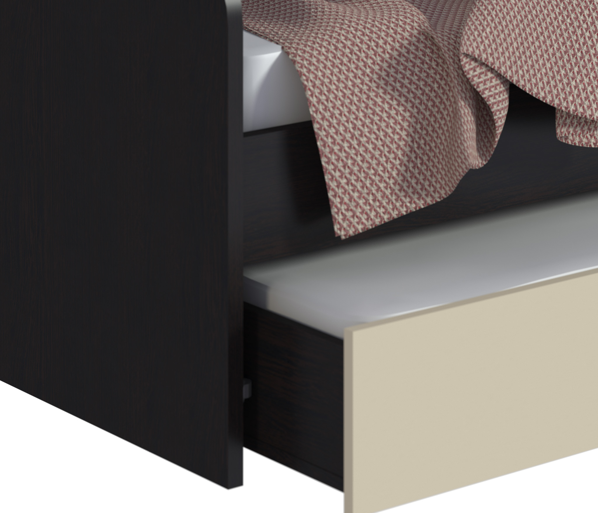 Большой выдвижной ящик. Используем для игрушек. Очень прочная. Хорошее спальное место. Купили жёсткий матрас 90*200. Мне и ребёнку понравилось. Рекомендую!!!!!