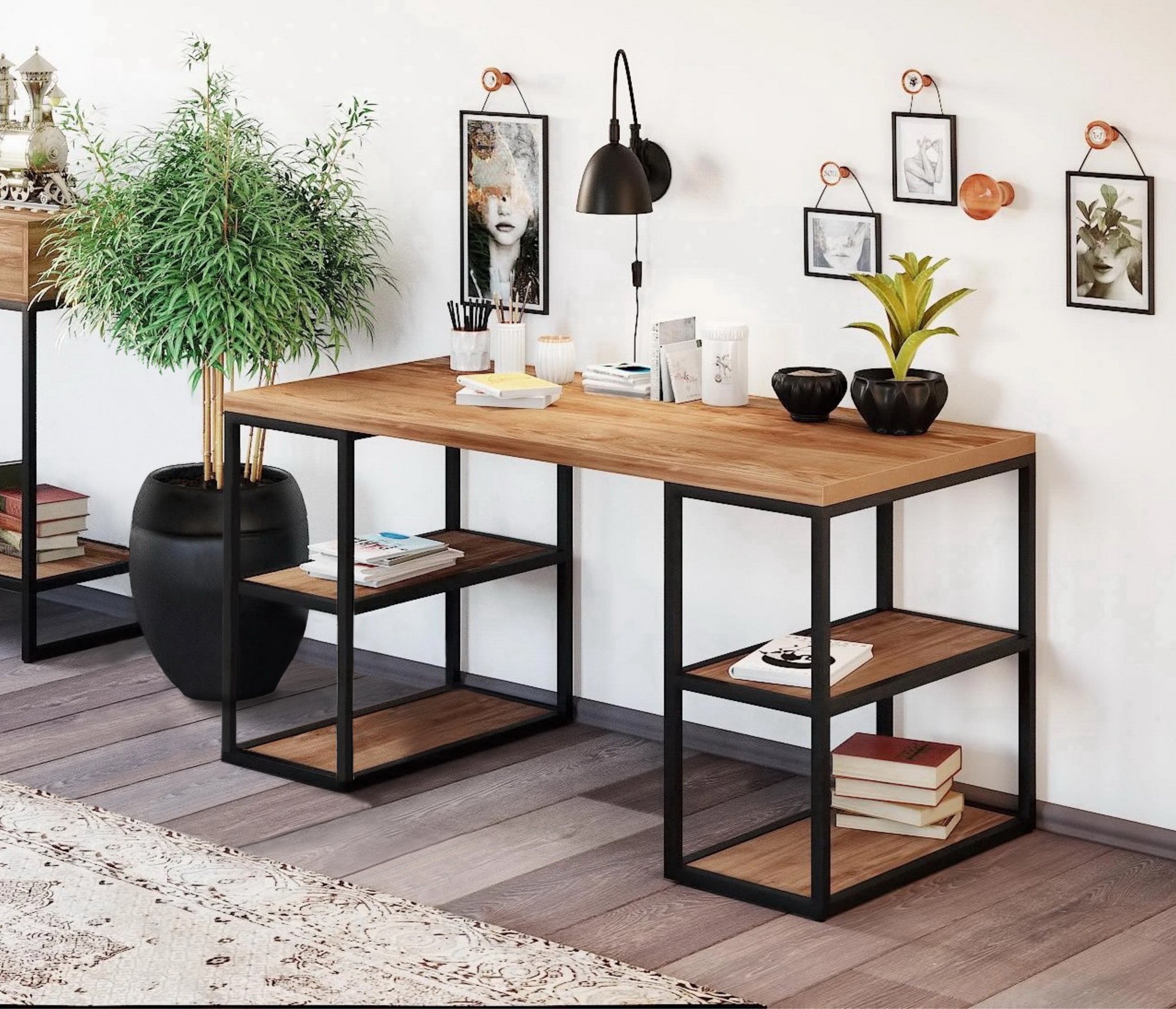 Каркас: профильная труба 20х20 мм.Прочное полимерно-порошковое покрытие черного, белого и серого цвета Дерево: массив сосны 20 мм, покрытое специальным маслом для мебели, цвета на выбор: бесцветный, белый, серый, махагон, орех, морёный дуб, черный, клён, черный графит, голубой графит, темное золото графит, золото графит.