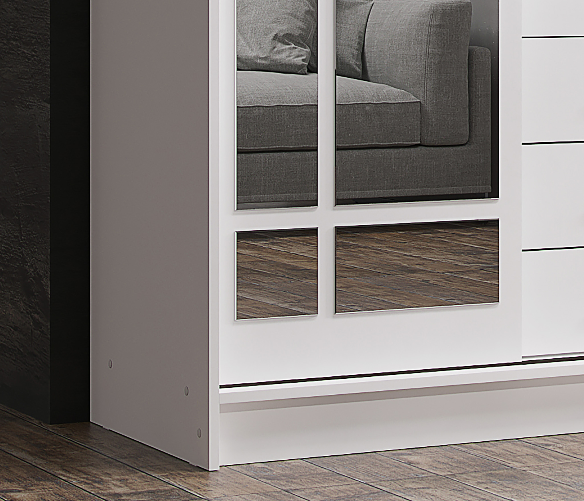 Доставили быстро,на следующий день ребята собрали.Шкаф полностью соответствует фото и описанию.Красивый,крепкий,вместительный.Наличие зеркал на дрерцах делают комнату больше и светлее.