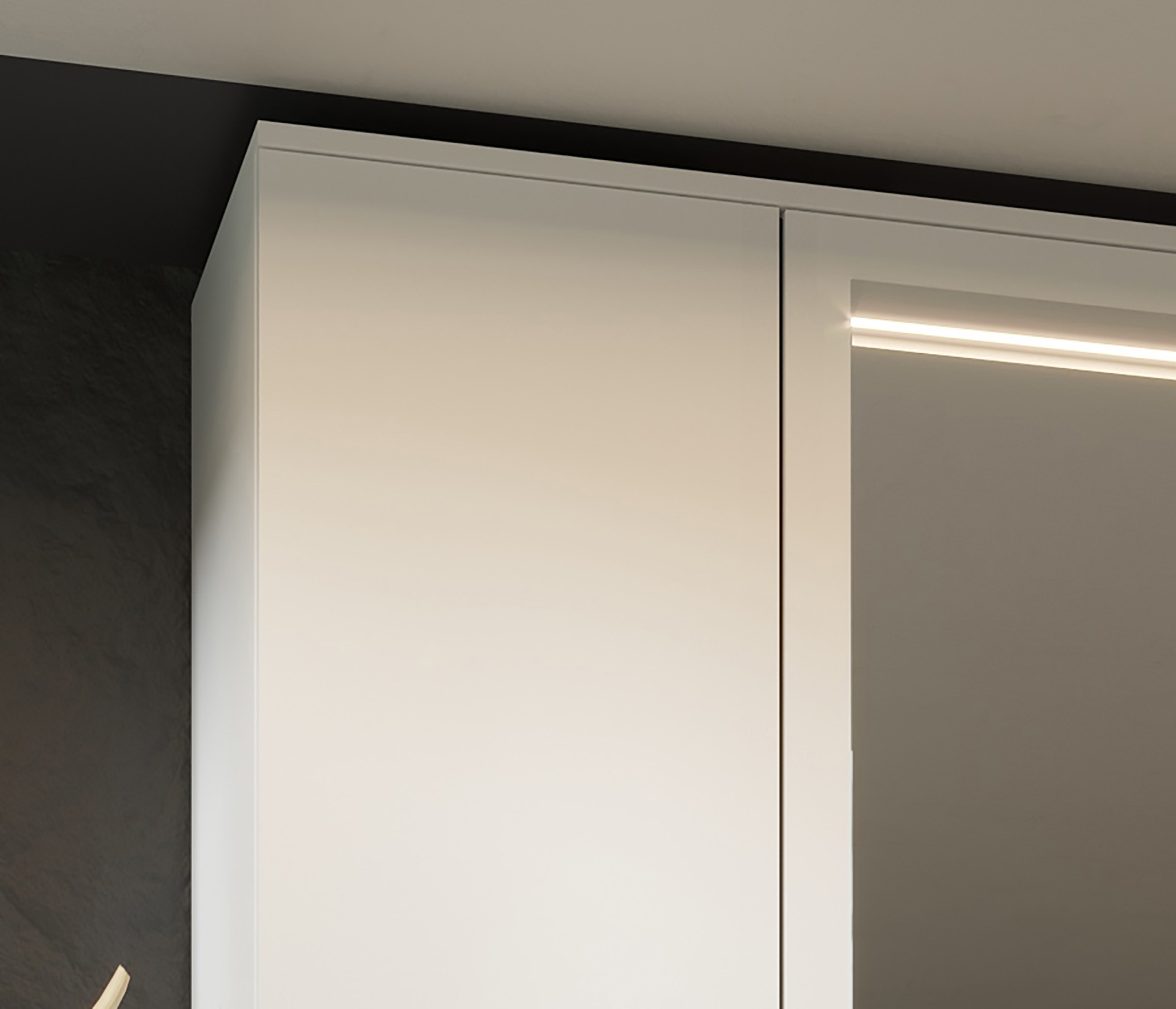 Большой распашной шкаф КВАДРО подарит вашему дому удобную систему хранения и визуально расширит пространство помещения, благодаря зеркалам на двух центральных дверцах. Функциональная и продуманная система хранения представлена двумя вертикальными секциями полок, парой широких выдвижных ящиков и отделением со штангой для вешалок.