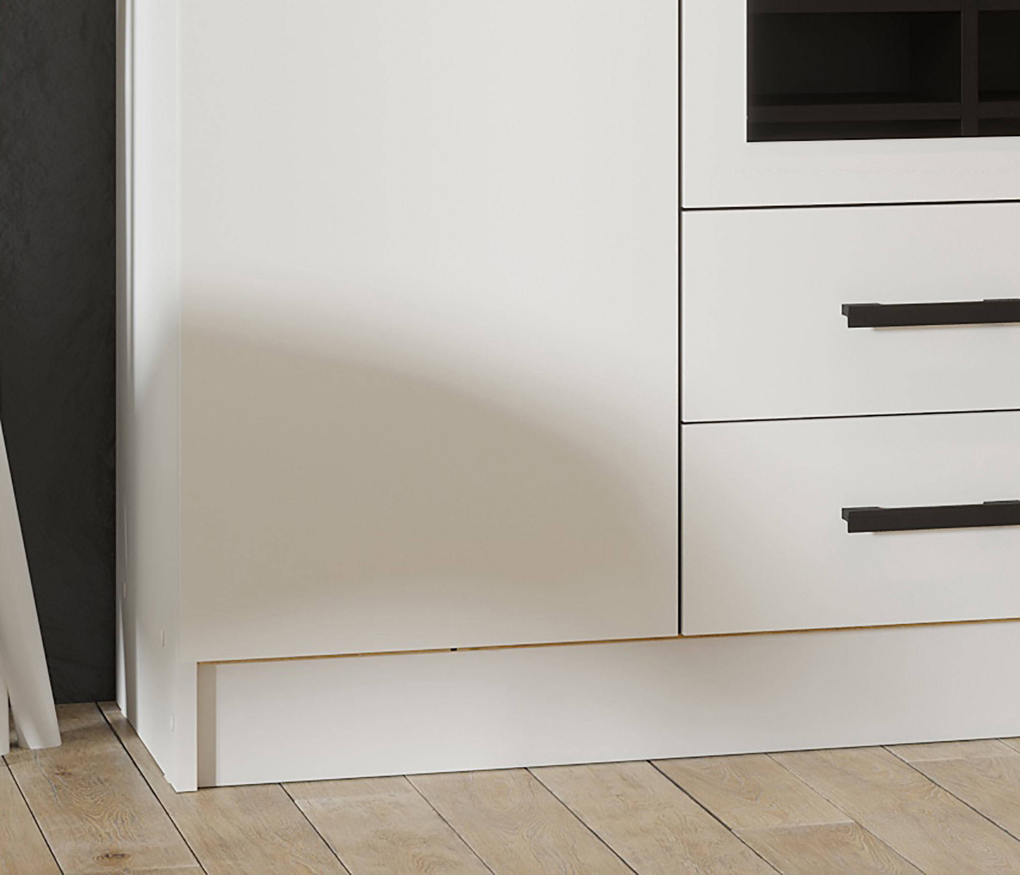 Большой распашной шкаф КВАДРО подарит вашему дому удобную систему хранения и визуально расширит пространство помещения, благодаря зеркалам на двух центральных дверцах. Функциональная и продуманная система хранения представлена двумя вертикальными секциями полок, парой широких выдвижных ящиков и отделением со штангой для вешалок.