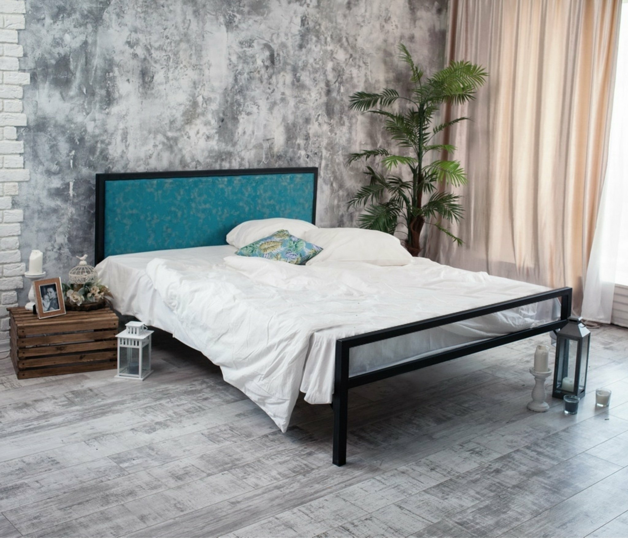 Кровать в стиле лофт Лоренцо 1.6 (Черный) (Голубой)