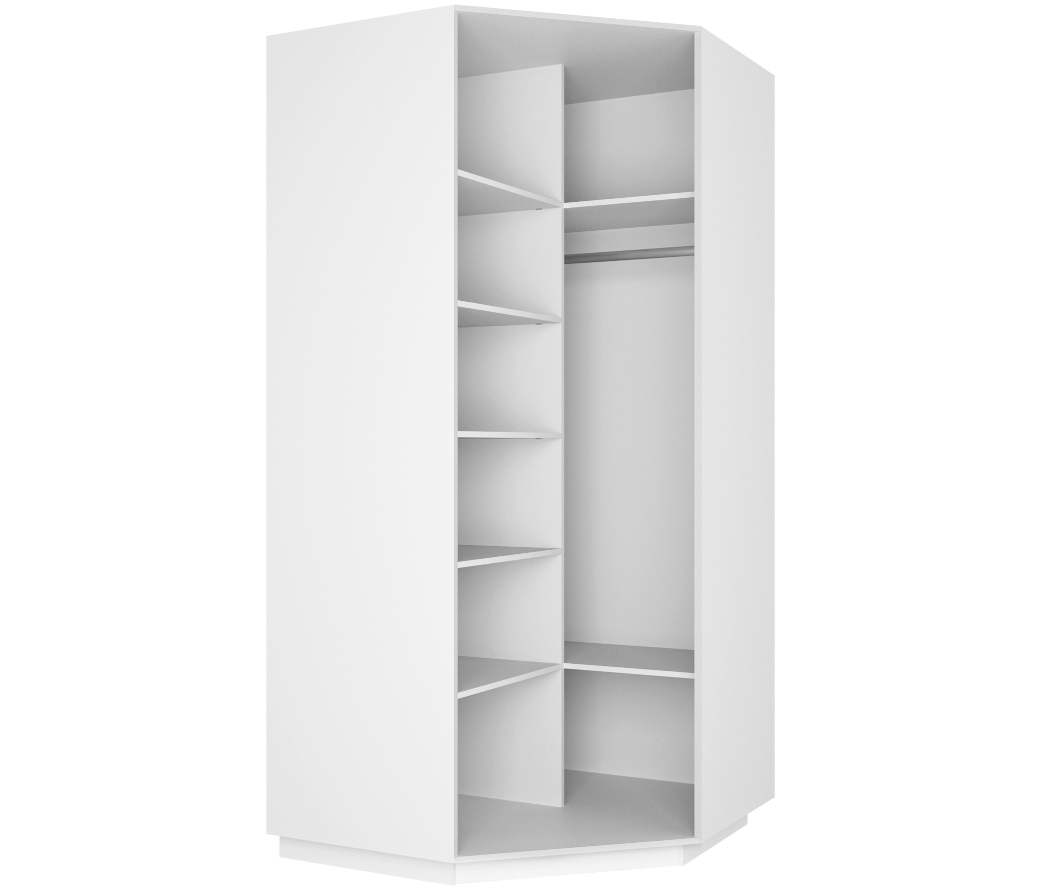 Солидное наполнение: с левой стороны углового «Экспресса» располагается 5 полок, с правой — две полки и штанга для одежды.