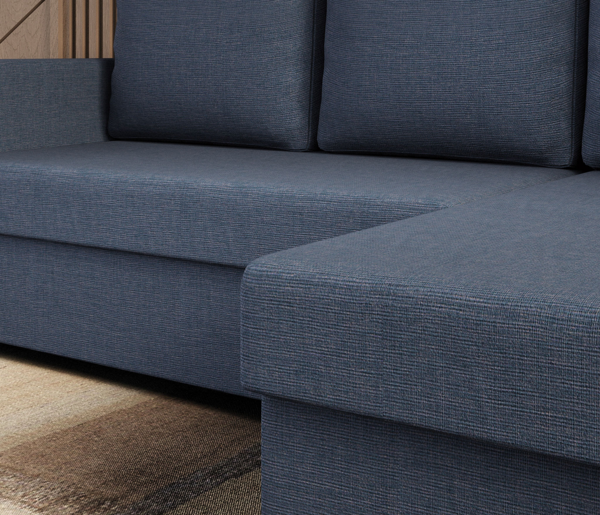 Каркас дивана «Джессика» выполнен из бруса и высокопрочной ЛДСП – ламинированной древесно-стружечной плиты, надежно удерживающей крепежные элементы.Мягкие части модели созданы на основе современного материала ППУ (пенополиуритана), полученного из синтетических полимеров и обработанного антигрибковым и антибактериальным составами. Материал долговечен, экологически безопасен, быстро восстанавливается после смятия, не плесневеет, не впитывает и не выделяет пыль. Обивка из рогожки приятна на ощупь, устойчива к разрывам и истиранию, не мнется, не растягивается и легко чистится.Простоту эксплуатации этого дивана обеспечивает выкатной механизм «Дельфин», позволяющий двумя движениями создать ровное и упругое спальное место размером 1400 х 1900 мм – достаточно выкатить вперед основание, а в освободившуюся нишу опустить спинку. Поэтому можно купить угловой диван «Джесика» для ежедневного пользования, а лаконичный дизайн и нейтральная цветовая гамма снимают ограничения при выборе дополнительных элементов интерьера – журнального столика, кресел, стеллажей и элементов декора.