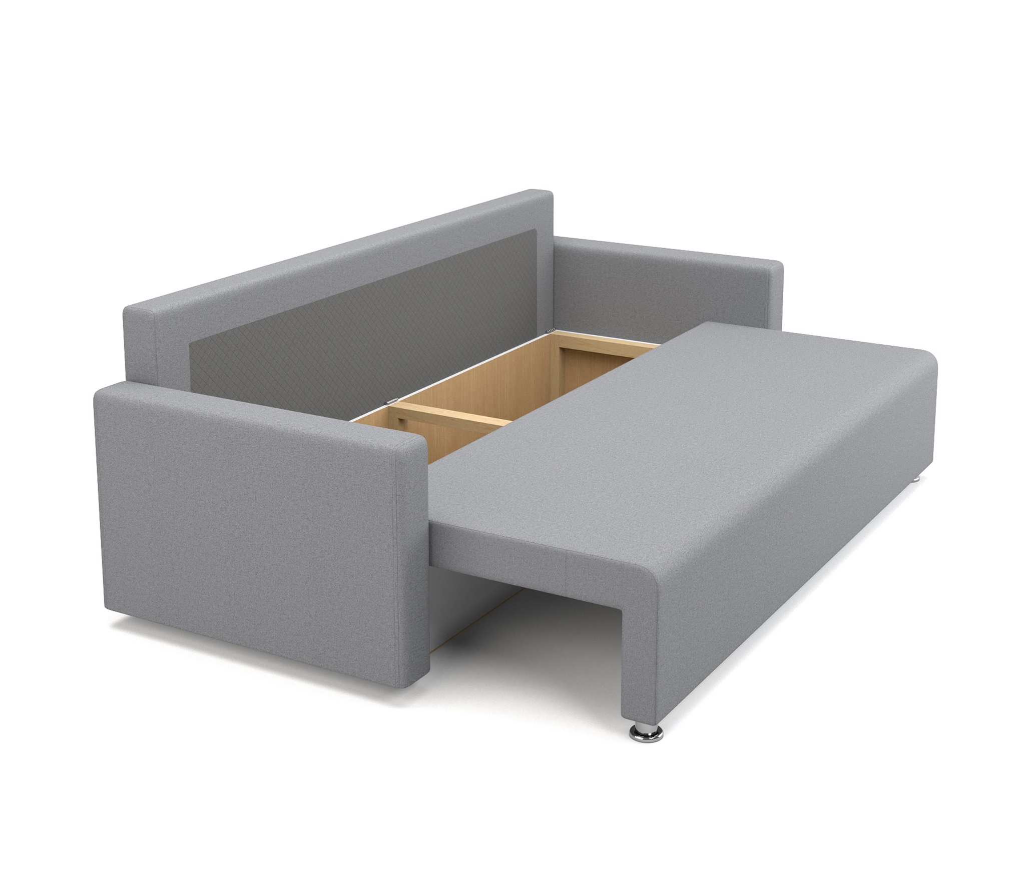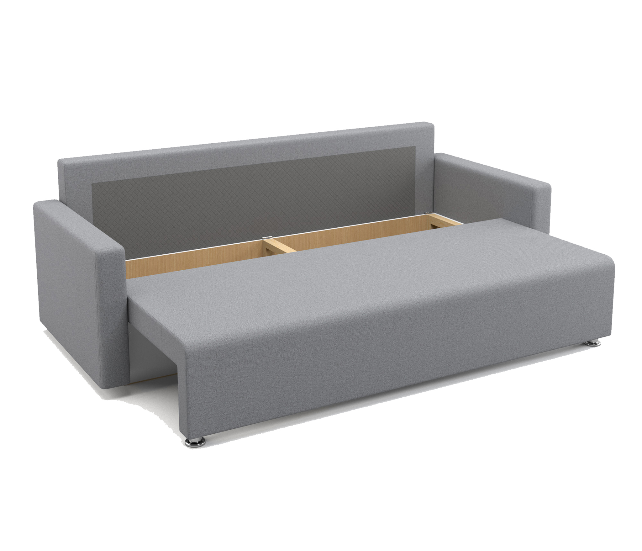 Добротный и простой диван, приятный цвет, пухлые подушки. Нескользкая обивка. Даже не разбирая, большое спальное место для одного человека. Покупкой довольны.