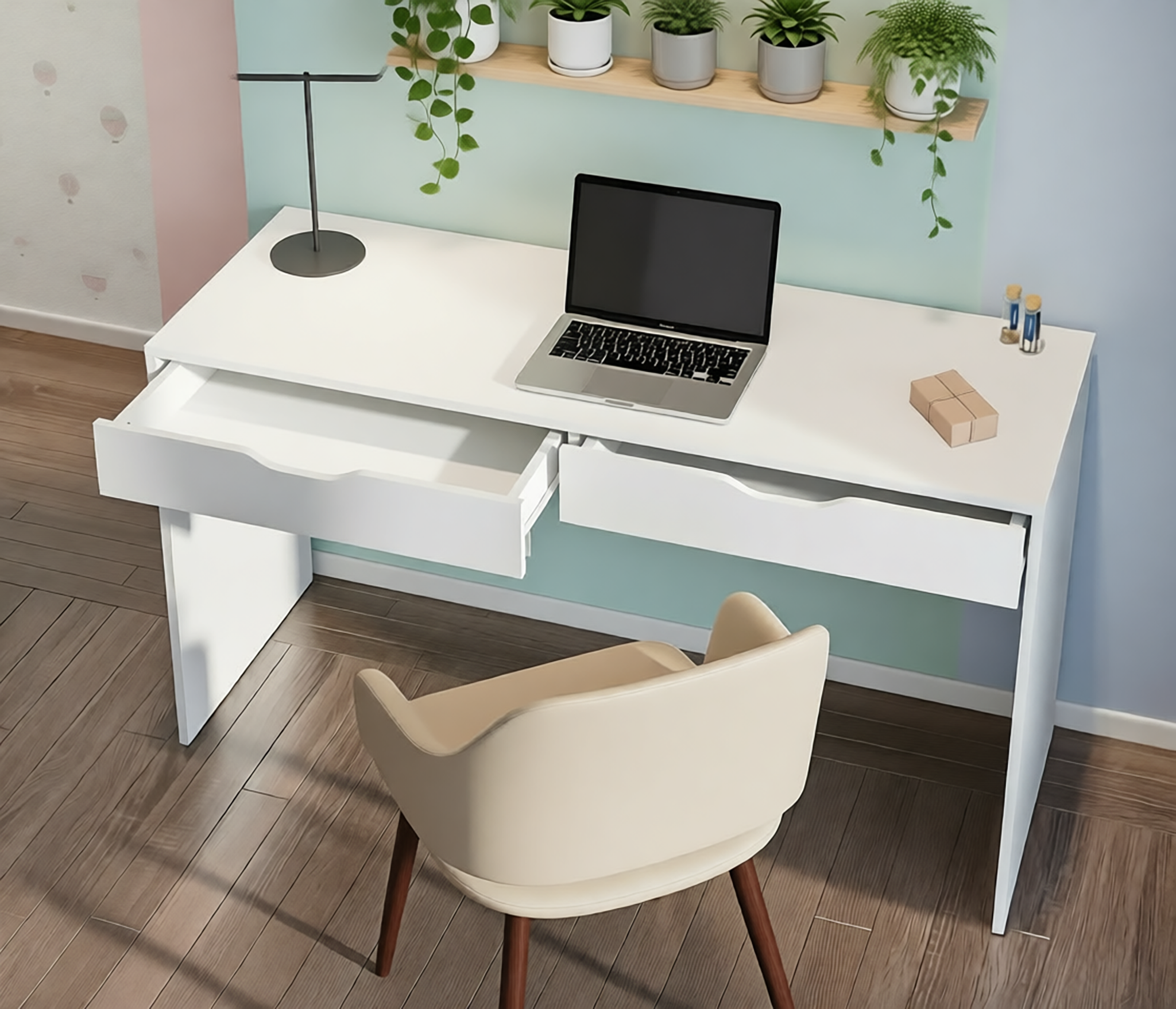 Минималистичный декор, отсутствие ручек и нейтральный цвет стола позволят разместить его в любой интерьер. Также вы можете дополнить письменный стол Бруклин комодами одноименной коллекции.