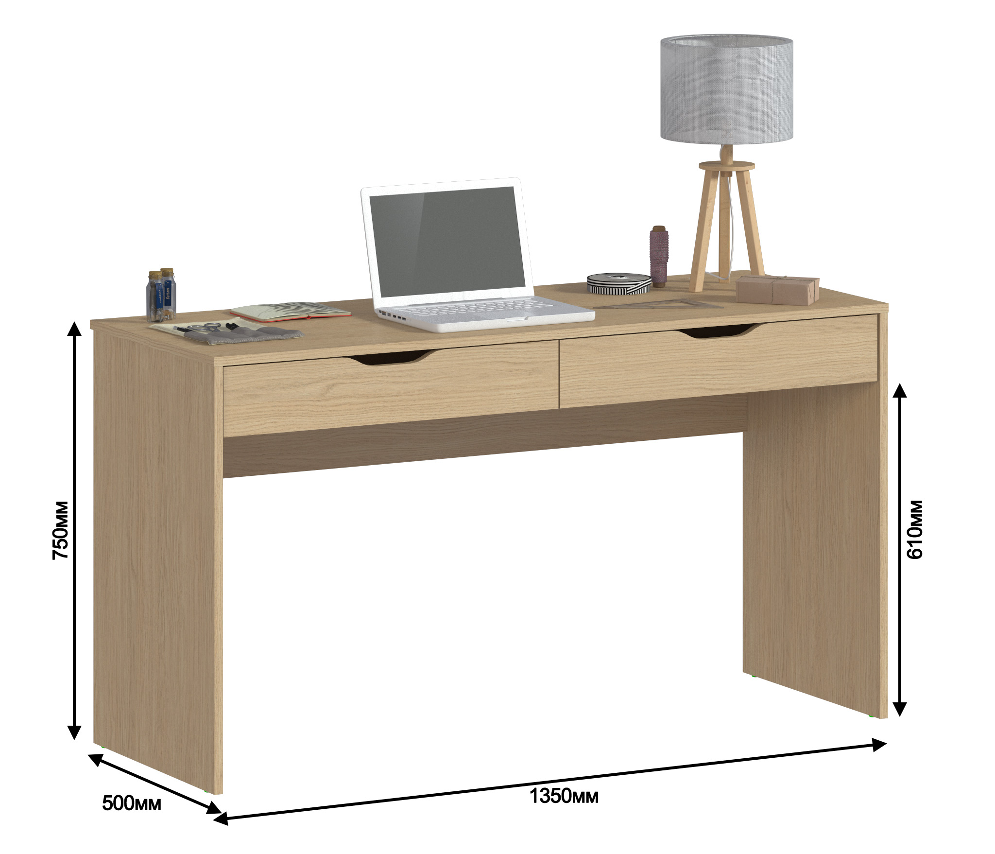 Стол Бруклин СБ-3335 – продуманное и комфортное рабочее место. Он может занять достойное место в кабинете, комнате школьника или студента, а также в офисе. Габариты стола Бруклин – ширина 135, высота 75 и глубина 50 см. Под рабочей поверхностью расположены два вместительных выдвижных ящика для хранения разных вещей.