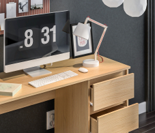 Стол Леон СБ-3336 – продуманное и комфортное рабочее место. Он может занять достойное место в кабинете, комнате школьника или студента, а также в офисе. Габариты стола Леон – ширина 119, высота 75 и глубина 50 см. Под рабочей поверхностью расположена тумба с ящиками для хранения разных мелочей.БикЮМинималистичный декор, отсутствие ручек и нейтральный цвет стола позволят разместить его в любой интерьер. Также вы можете дополнить письменный стол Леон комодами одноименной коллекции. Выполнен комод из высококачественного КДСП.