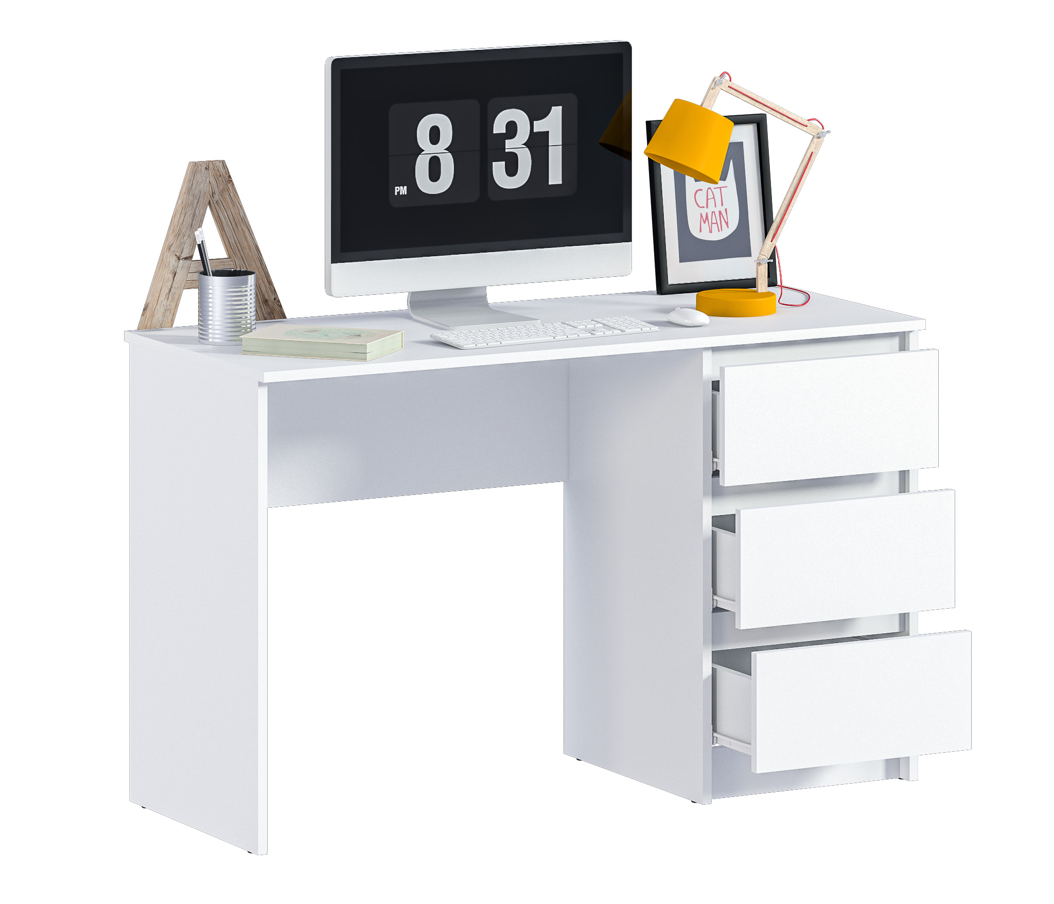 Стол Леон СБ-3336 – продуманное и комфортное рабочее место. Он может занять достойное место в кабинете, комнате школьника или студента, а также в офисе. Габариты стола Леон – ширина 119, высота 75 и глубина 50 см. Под рабочей поверхностью расположена тумба с ящиками для хранения разных мелочей.БикЮМинималистичный декор, отсутствие ручек и нейтральный цвет стола позволят разместить его в любой интерьер. Также вы можете дополнить письменный стол Леон комодами одноименной коллекции. Выполнен комод из высококачественного КДСП.