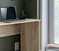 Стол Мамбо СБ-3339 – комфортное рабочее место, где предусмотрены отделения для хранения бумаг, книг, журналов. Он органично впишется в комнату школьника, студента, а также в кабинет. Габаритные размеры стола довольно просторные – ширина 148 см, высота 105 см и глубина 50 см. Рядом с рабочей поверхностью расположено вместительное отделение с полками и с ящиком.