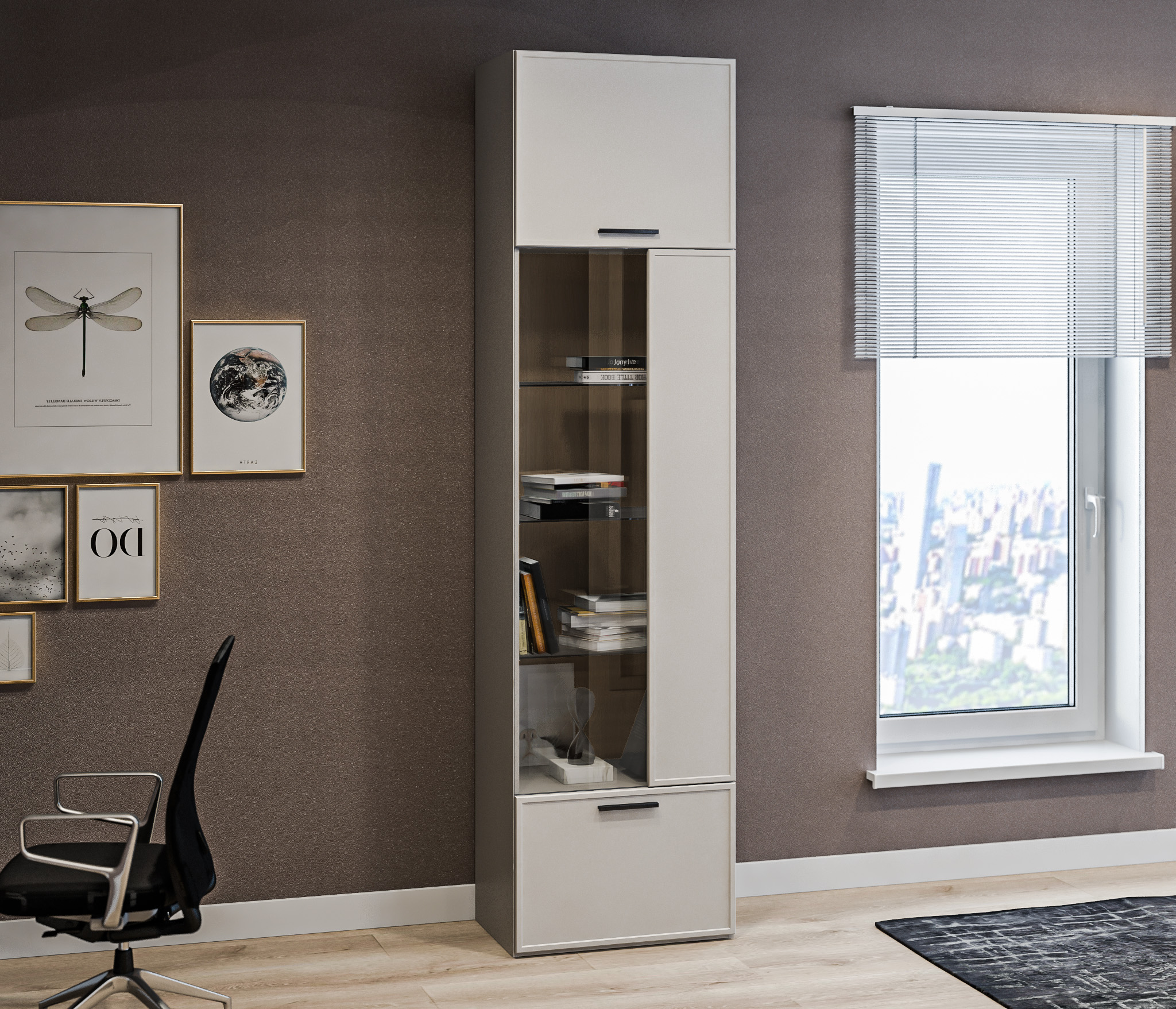 Шкаф-витрина Милан СБ-3256 Серый/МДФ Светло серый (Серый/Светло серый)