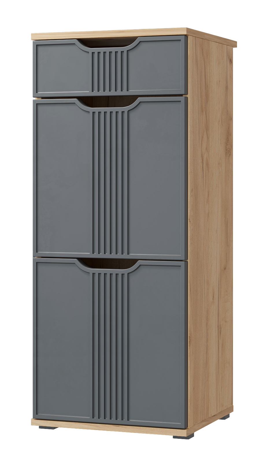 Тумба Эмилия ЭЛ-3 изготовлена из ЛДСП 16 мм, фасады МДФ. Тумба оснащена одним выдвижным ящиком, за дверьми расположены три полки для размещения обуви и других вещей. Сочетая тумбу с другими модулями из коллекции Эмилия, Вы можете создать стильную и лаконичную прихожую у себя дома. Фурнитура: телескопические направляющие полного выдвижения, петли с доводчиками.
