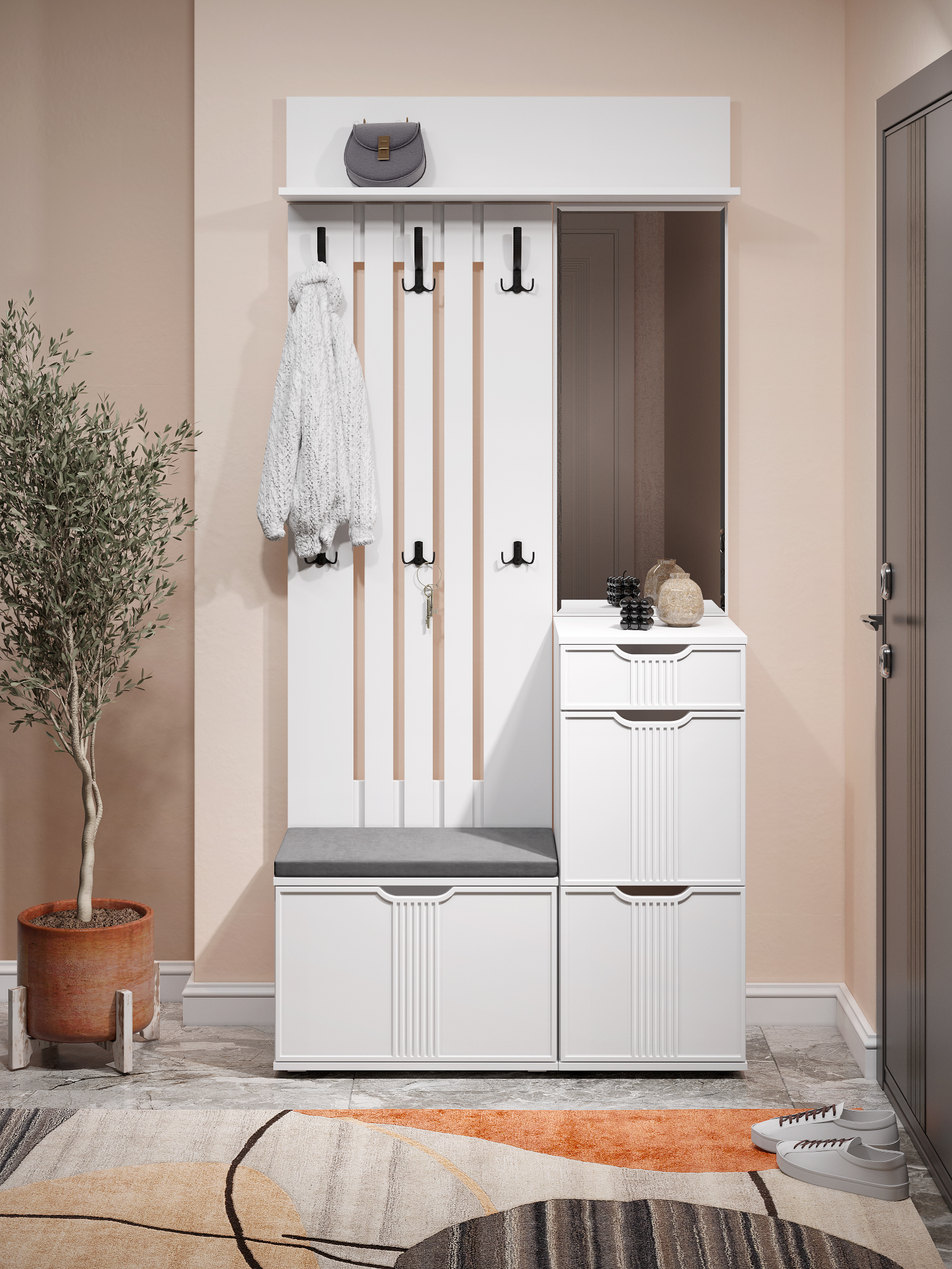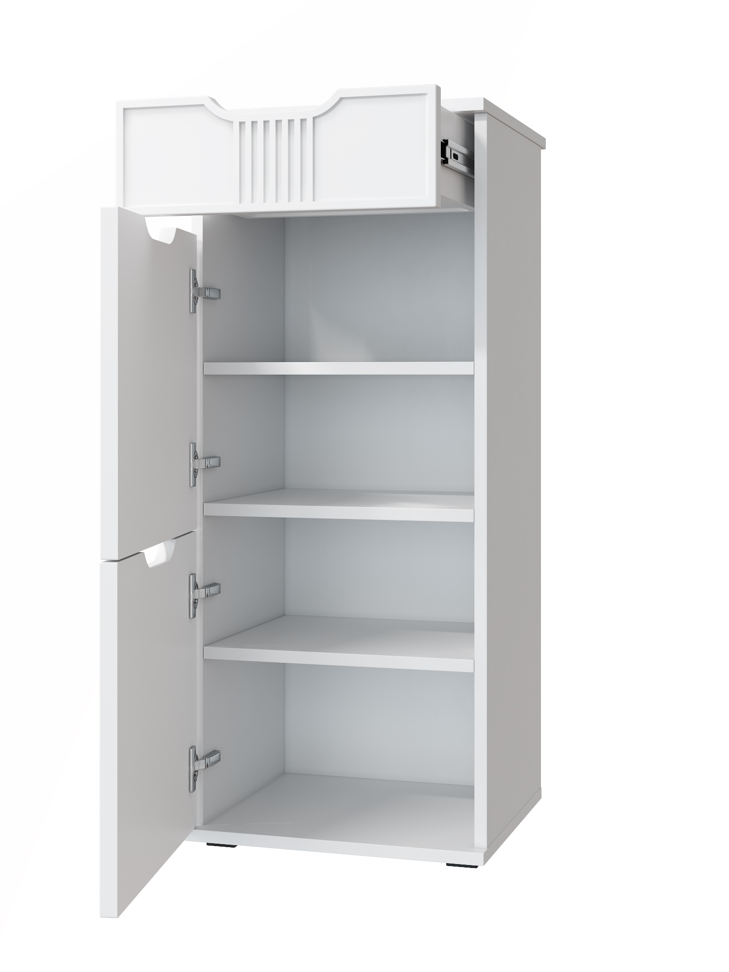 Тумба Эмилия ЭЛ-3 изготовлена из ЛДСП 16 мм, фасады МДФ. Тумба оснащена одним выдвижным ящиком, за дверьми расположены три полки для размещения обуви и других вещей. Сочетая тумбу с другими модулями из коллекции Эмилия, Вы можете создать стильную и лаконичную прихожую у себя дома. Фурнитура: телескопические направляющие полного выдвижения, петли с доводчиками.