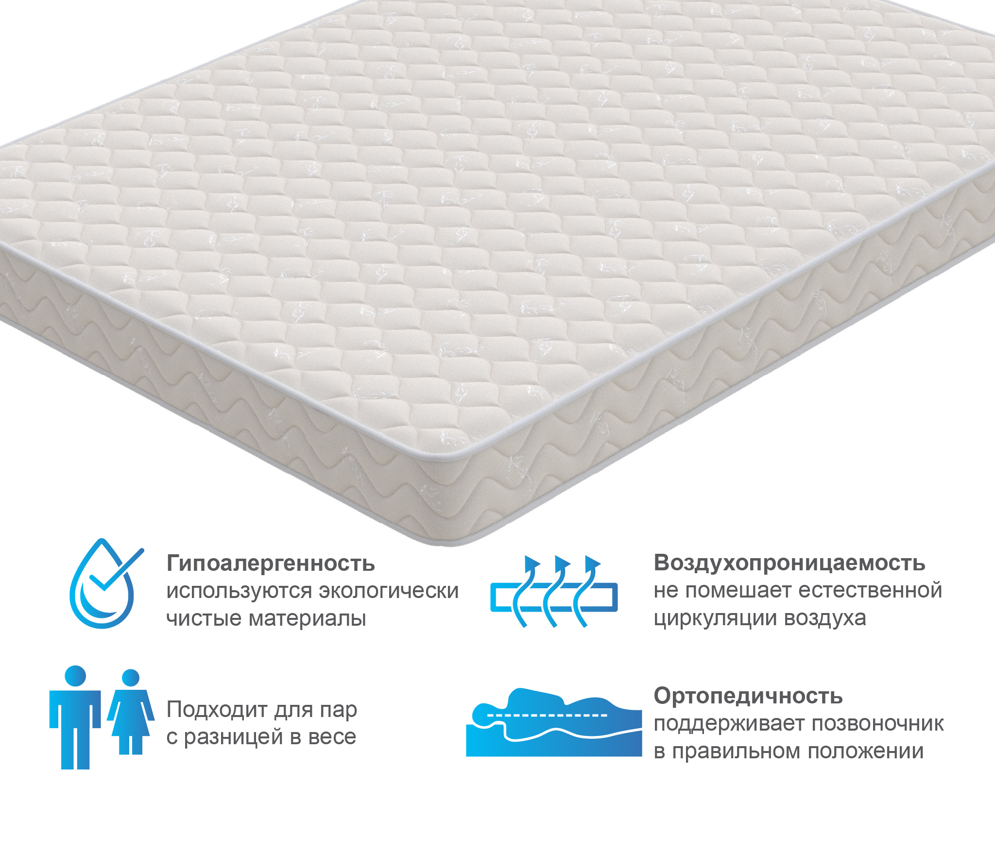 Как-то не сталкивалась с пеной внутри матраса, а тут обратила внимание на оригинальную модель с упругим наполнителем. На мой вес до 60 кг матрас подошел идеально, держит меня, как родную.