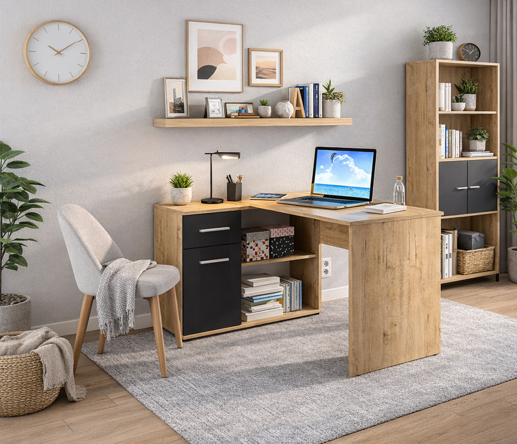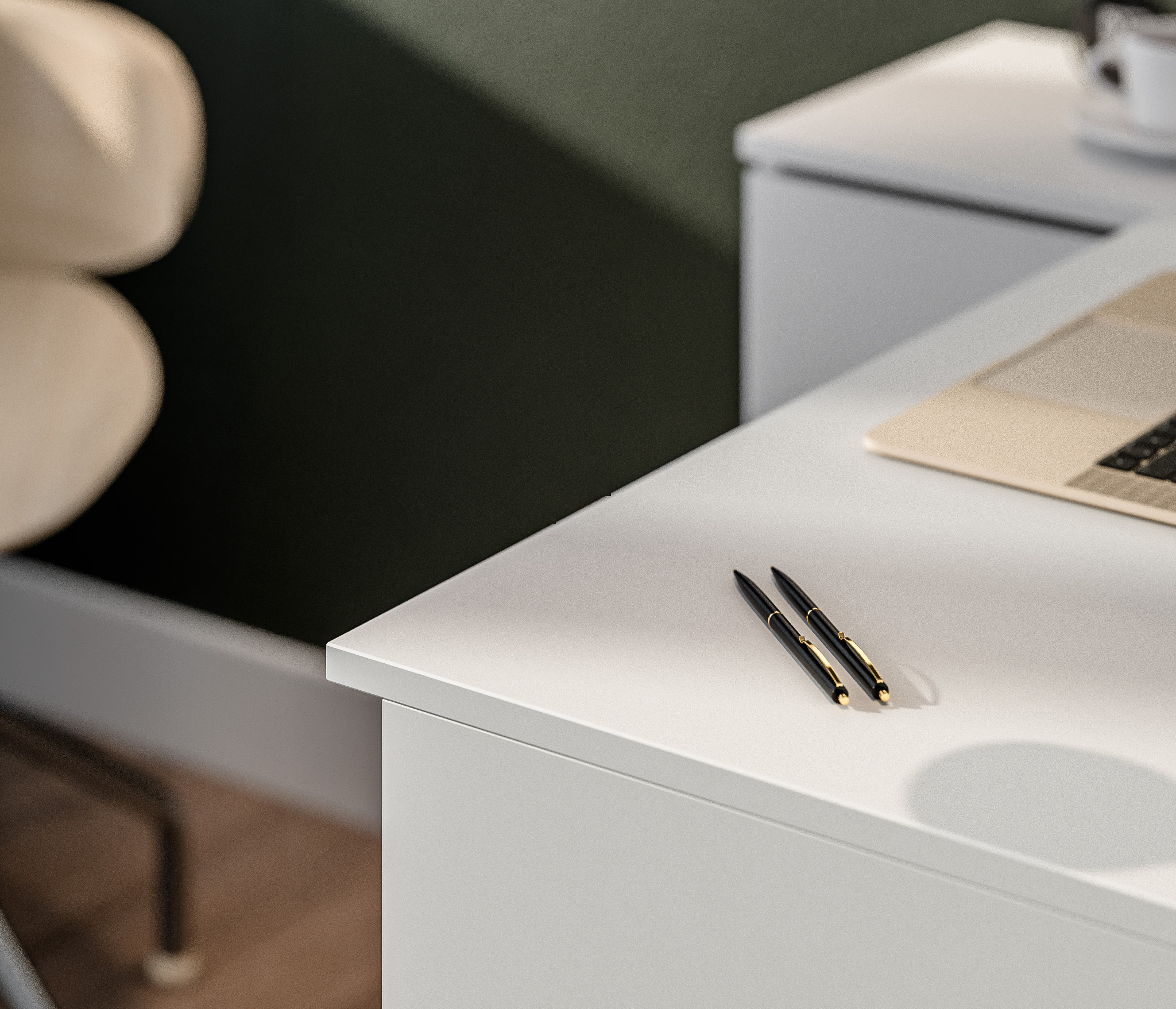 Угловой стол Альфа СБ-2955 - продуманное и комфортное рабочее место. Идеальный вариант, если есть необходимость в двух письменных столах. Простая конструкция, универсальные цвета, лаконичный угловой дизайн позволяют без проблем разместить стол Альфа в детской, комнате школьника или студента, а также в кабинете.