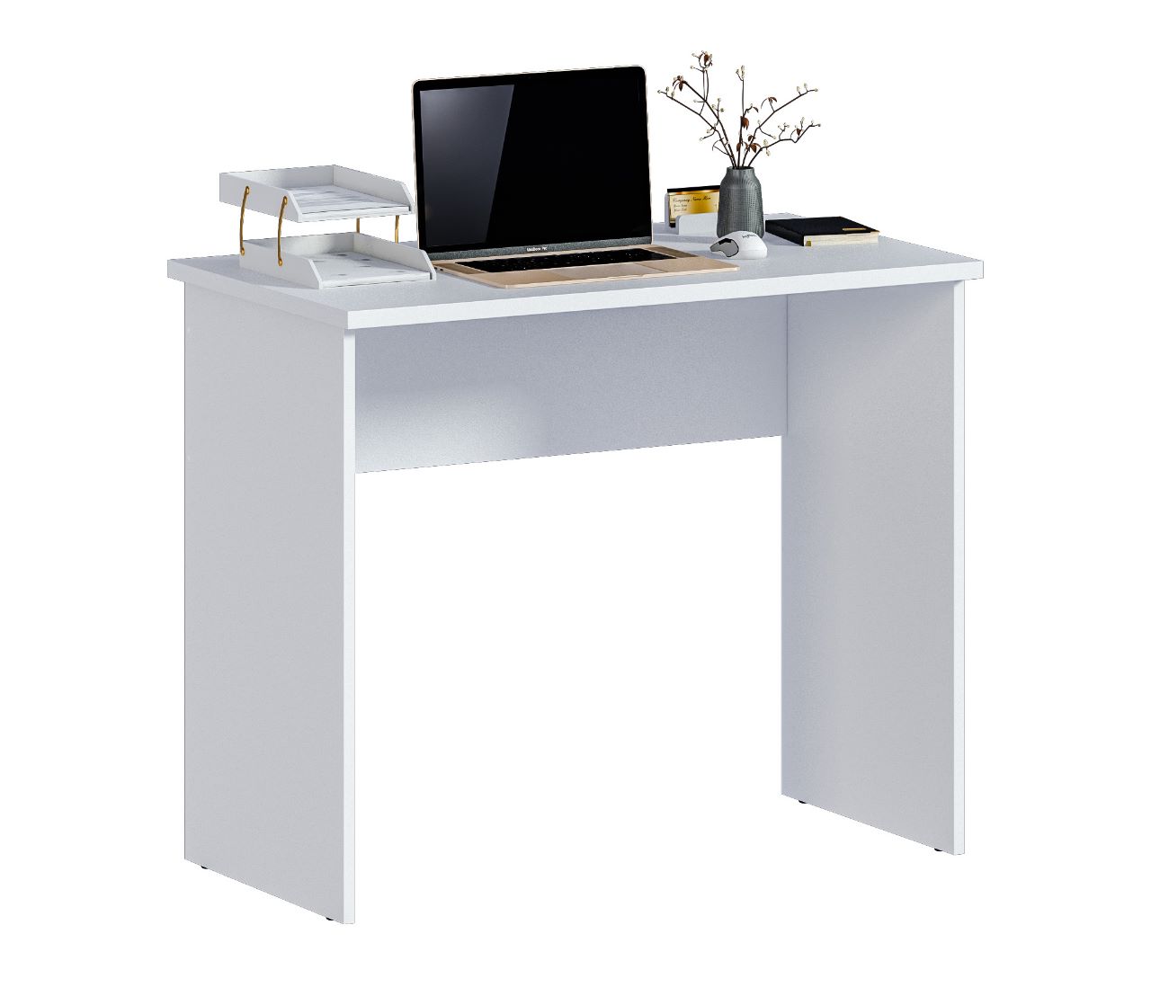 Габаритные размеры – ширина 90 см, высота 75 и глубина 50 см. Стол произведен из современного и экологичного материала ЛДСП. Минималистичный дизайн и цвет стола не создают ощущение громоздкости. Материал отделки легок в уходе.