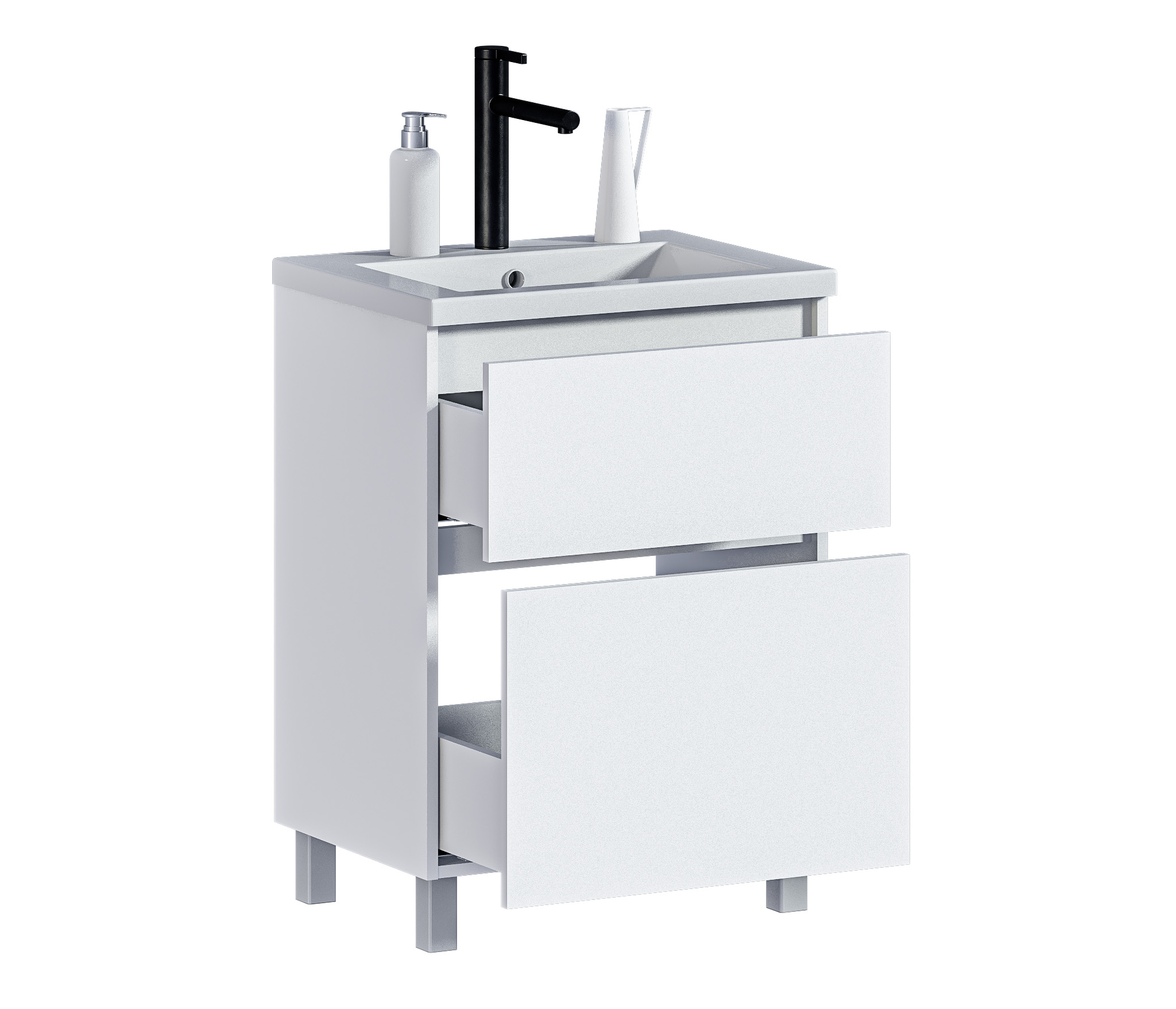 Тумба Люкс СБ-3334 предназначена для установки под раковину, где раковина приобретается отдельно. Тумба входит в состав модульной коллекции Люкс, разработанной для современных ванных комнат, но также органична как автономный предмет мебели. Габаритные размеры – ширина 60 см, высота 82 см, глубина 45 см. Тумба устанавливается на полу и оснащена двумя вместительными ящиками, каждый из которых может выдержать до 7 кг нагрузки. Корпус выполнен из прочного и современного ЛДСП с отделкой белого цвета. При желании можно отдельно приобрети столешницу СБ-3166 коллекции Люкс.