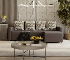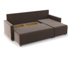 Простой и практичный угловой диван Челси с популярным механизмом трансформации «Еврокнижка», вместительным бельевым ящиком станет центральным интерьером классической гостиной, уголка отдыха в домашнем кабинете или рабочем офисе и полноценной альтернативой двуспальной кровати в гостевой комнате или однокомнатной квартире. Угловая конфигурация модели обеспечивает рациональное использование метража помещения и исключает необходимость приобретения дополнительных мест для сидения, а мягкие подспинные подушки вызывают желание присесть и расслабиться.