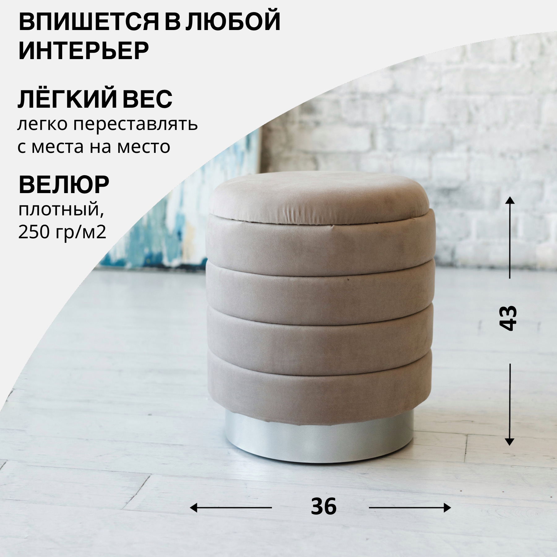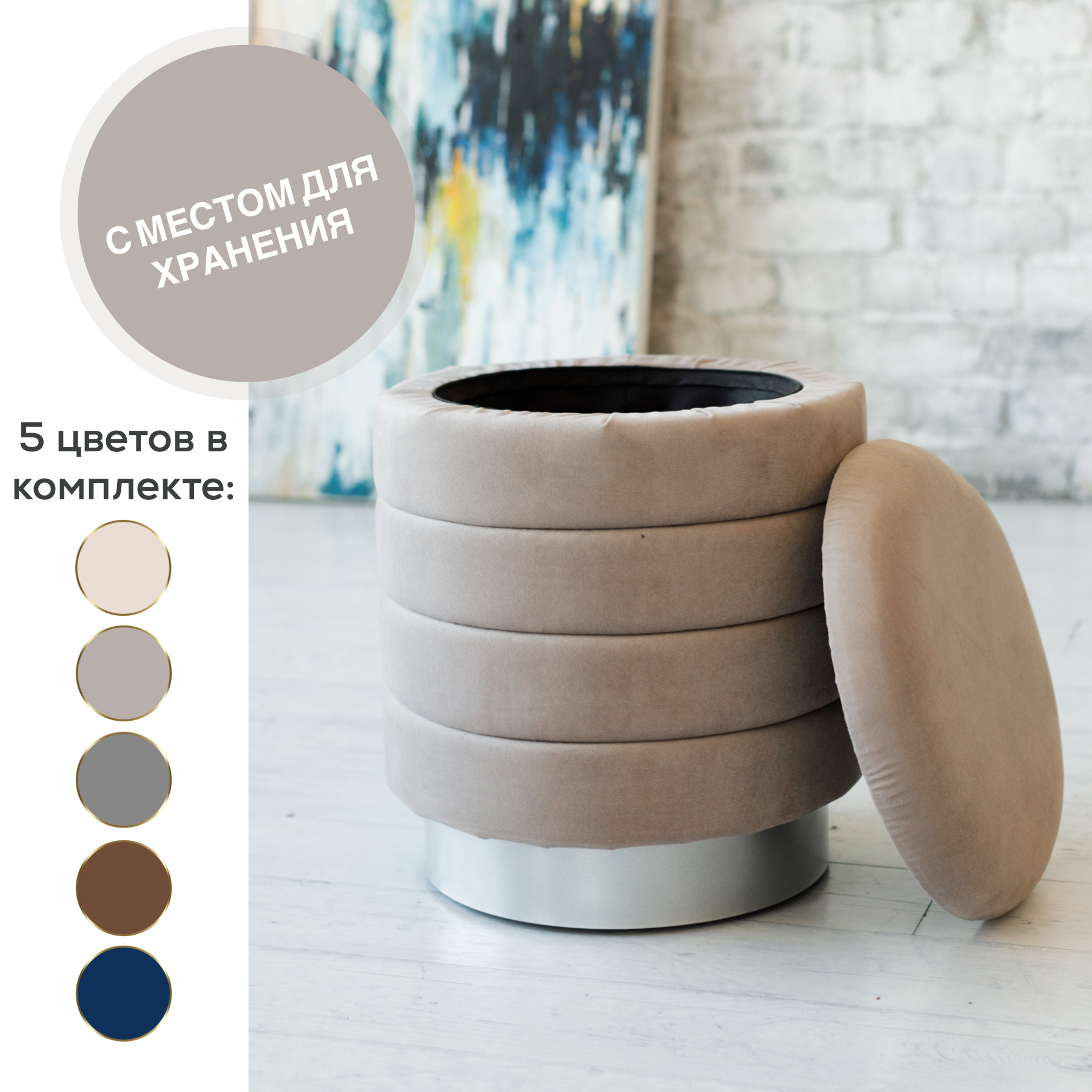 В пуфе имеется отделение для хранения вещей.