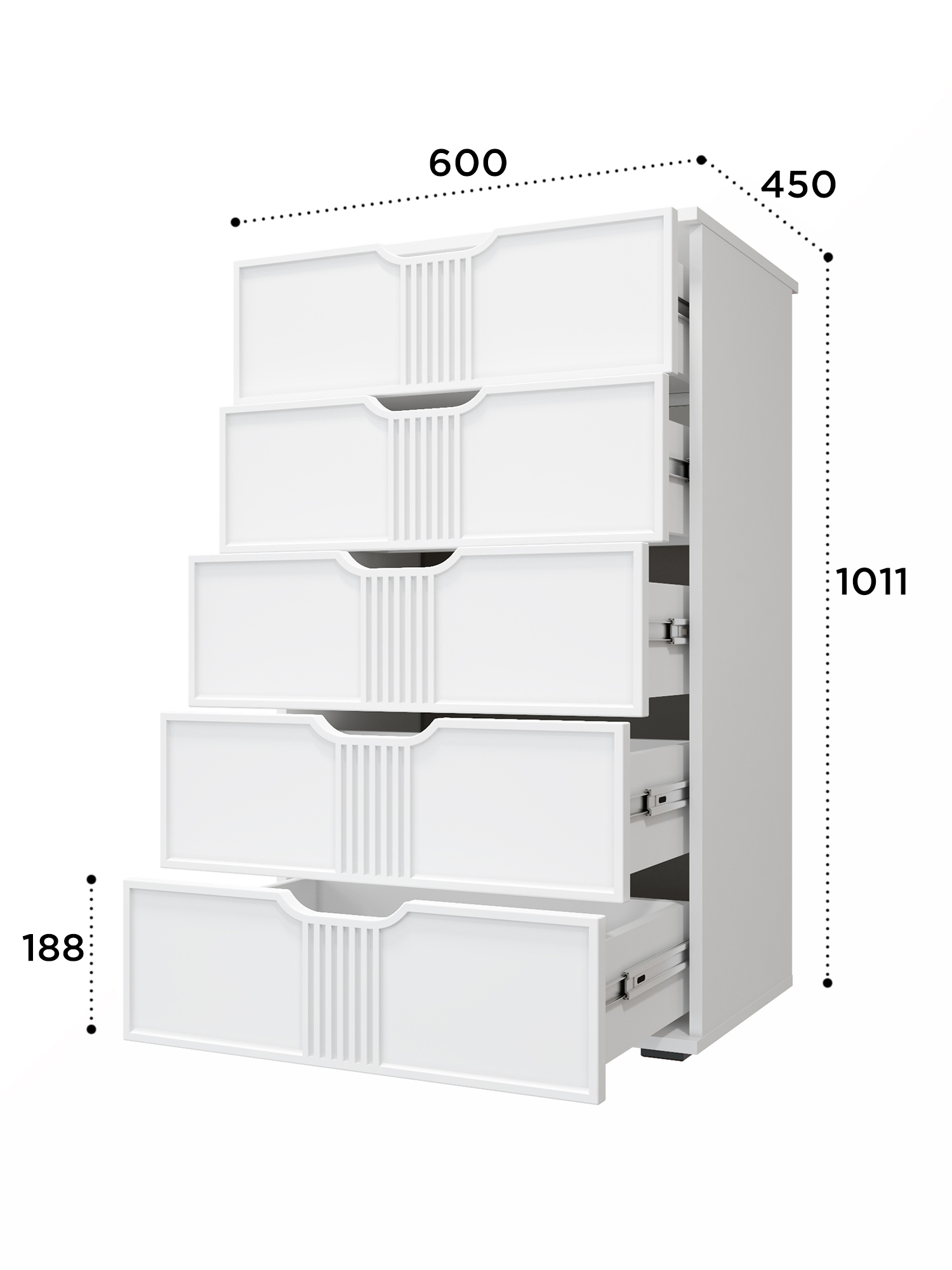 Комод Эмилия ЭЛ-18 изготовлен из ЛДСП 16 мм, фасады МДФ. Свес крышки в 30 мм обеспечит прилегание к стене с любым плинтусом. Фурнитура: телескопические направляющие полного выдвижения без доводчиков. Важная информация. Мебель доставляется в разобранном виде, в упаковках.