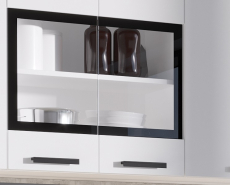 два верхних шкафа: первый шкаф - общая ширина 1000мм (400-глухой , 600-со стеклом) Внимание! Это единый элемент, разъединить шкафы невозможно! Второй шкаф - на 500мм. Высота 626мм. Глубина 270 мм.