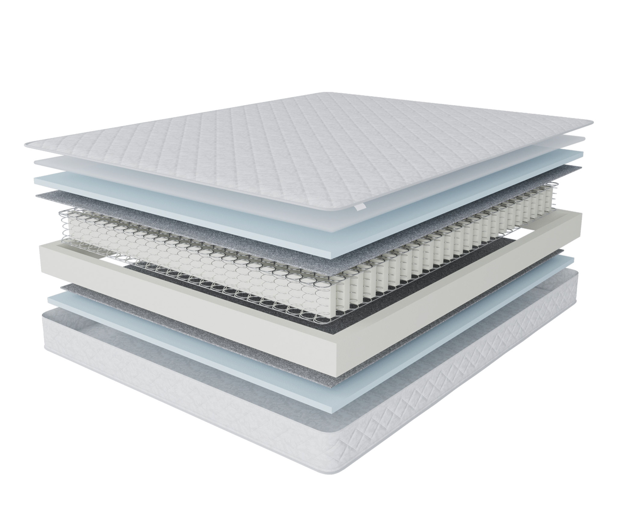 Матрас высокой жесткости с усиленным пружинным блоком Боннель . Усиление достигается за счет вставок из пенополиуретана. Данный матрас рекомендуется для людей с повышенной массой тела.