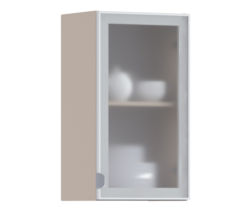 Регина РП-40 Полка Песочный/Витрина алюминий Белый глянец/стекло Сатин (Белый Глянец)
