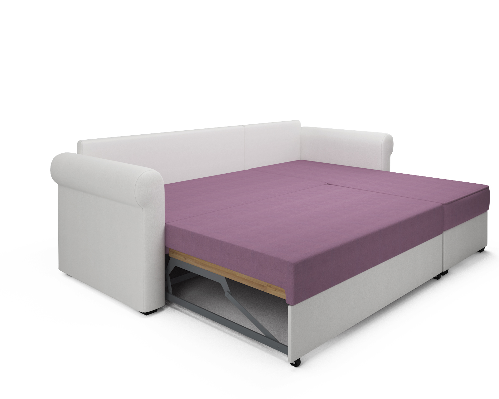 Глубокое сиденье и объемные подушки для спинки помогут расслабиться и насладиться моментом во время чтения книг и просмотра телевизора. Получить просторное спальное место в размере 1450х2000 позволяет механизм трансформации "дельфин".