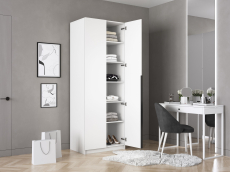 Благодаря надежным полкодержателям - штифтам, полки шкафа могут выдерживать до 15 кг. Шкаф оснащен долговечной, ударостойкой кромкой ПВХ, которая защищает его торцы от сколов и повреждений. Мебельные петли Titus B-Type обеспечивают открывание и закрывание двери под углом 110 градусов, а также предотвращают ее перекос. Наличие отдельного цоколя позволяет поставить шкаф вплотную к стене. Шкаф оснащен удобной минималистичной ручкой, изготовленной из алюминия.