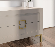 Золотистые ручки и ножки коллекции "Ассоль" добавляют неповторимый шик и изысканность, завершая образ тонким и стильным блеском. Эти акценты создают атмосферу роскоши и утонченности. Они играют роль визуального украшения, дополняя общий вид мебели и придавая ей особый шарм и элегантность.