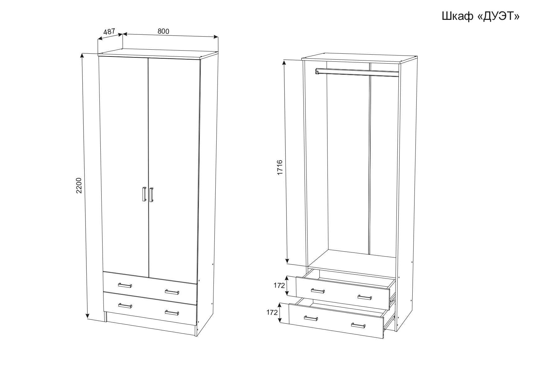 Шкаф Дуэт распашной платяной 0,8 м ЛДСП Код R0000280522